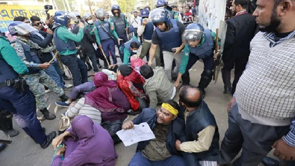 শাহবাগে শিক্ষকদের অবরোধ, পুলিশের লাঠিচার্জ ও জলকামান নিক্ষেপ