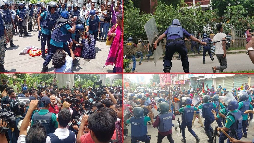 বৈষম্যবিরোধী ছাত্র আন্দোলনের ব্যানারে ‘মার্চ ফর জাস্টিস’ কর্মসূচি বাস্তবায়নে শিক্ষার্থীরা রাস্তায় নামলে পুলিশ তাদের ওপর চড়াও হয়। রাজপথ থেকে তাদের হটানোর চেষ্টা করলে উভয় পক্ষে শুরু হয় ধাওয়া-পাল্টা ধাওয়া। কোথাও কোথাও লাঠিচার্জ করে পরিস্থিতি নিয়ন্ত্রণে আনে আইনশৃঙ্খলা রক্ষাবাহিনী। এতে বেশ কয়েকজন আহত হয়। এ সময় কমপক্ষে ৫০ জনকে আটকও করা হয়।