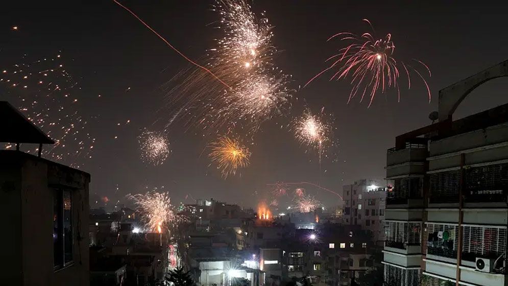 নানা বিধিনিষেধের মধ্যেই বর্ণিল আয়োজনে রাজধানীসহ সারাদেশে বরণ করে নেওয়া হলো ২০২৫ ইংরেজি নতুন বছরকে। রাত ১২টা এক মিনিট হতেই অবিরত আতশবাজির ঝলকানিতে বর্ণিল হয়ে উঠে রাজধানী ঢাকার আকাশ। পাশাপাশি ফুটতে থাকে পটকা। শব্দে প্রকম্পিত হয় চারপাশ। নতুন বছরকে বরণ করে নিতে এভাবেই একযোগে ঢাকার বিভিন্ন এলাকার ছাদ বা কোথাও মাঠ থেকে আতশবাজি পোড়ানো হয়। কেউ ফানুস উড়ায়।