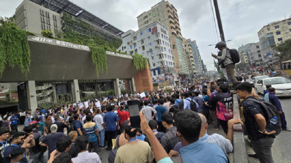 বাড্ডায় ব্র্যাক বিশ্ববিদ্যালয় শিক্ষার্থীদের সড়ক অবরোধ
