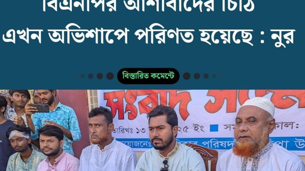 নুরুল হক নুর বলেন, বিএনপি আমাদের (গণঅধিকার পরিষদ) আশীর্বাদের পরিবর্তে অভিশাপের চিঠি দিয়েছে। এই চিঠির কারণে হাসান মামুনের সঙ্গে সাংঘর্ষিক পরিস্থিতি তৈরি করে রেখেছে। এলাকায় বিএনপির গণঅধিকারকে সহযোগিতা তো দূরের কথা, বরং হামলা-মামলা করা হয়েছে। সহযোগিতার আশীর্বাদ অভিশাপে পরিণতি হয়েছে। হাসান মামুনের মতো নেতাদের বিরুদ্ধে পদক্ষেপ গ্রহণ করুন। অন্যথায় মানুষ বিএনপি থেকে মুখ ফিরিয়ে নেবে। ভোট এখনো হয়নি, গত ১০ মাসে মানুষ তিক্ত-বিরক্ত।