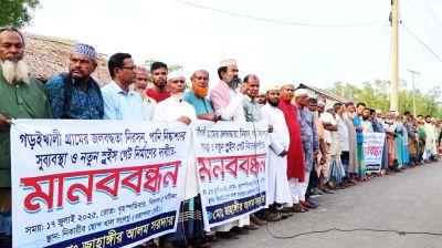 জলাবদ্ধতা নিরসন ও খাল খননের দাবিতে মানববন্ধন ও স্মারকলিপি প্রদান