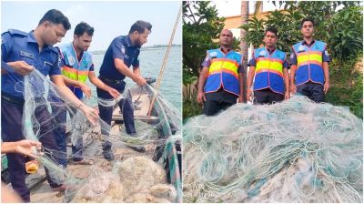 ০৭ দিনব্যাপী নৌ পুলিশের অভিযান, বিপুল পরিমাণ অবৈধ জাল-মাছ-মাছের পোনা উদ্ধারসহ আটক ৪০১